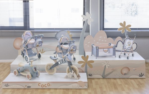 DeCuevas 30080 Moje prvé odrážadlo COCO 2024 patrí do rovnomennej kolekcie, ktorá je novinkou roku 2024 a ponúka nielen kočíky, ale aj iné doplnky nielen pre malé slečny a ich bábiky, ale aj pre chlapcov. V hravej kolekcii COCO je dominantný obrázok dinosaurie mamičky so svojim roztomilým mláďatkom, ktoré nesie na zadočku ešte vaječnú škrupinu. Potlač malého dinosauríka na jemne holubičej šedomodrej látke je základom celej kolekcie, ktorú zdobia prvky v pieskovej alebo ružovkastej farbe, ktorá sa premieta aj do väčšiny nosných konštrukcií.