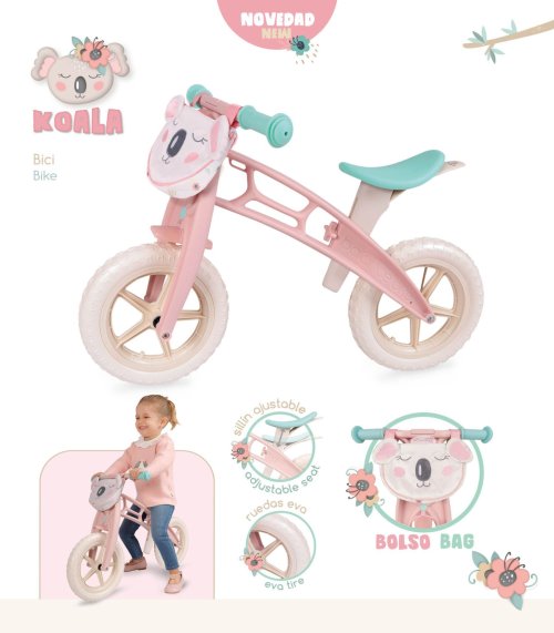 DeCuevas 30179 Detské odrážadlo - Balance Bike KOALA 2024, z rovnomennej kolekcie, ktorá je novinkou roku 2024, je pre deti ideálnym dopravným prostriedkom, na ktorom sa učia držanie rovnováhy a trénujú koordináciu celého tela. Deti sa na ňom naučia veľmi rýchlo udržať stabilitu a potom bez problémov ľahko a rýchlo prejdú na normálny šliapací bicykel. Veľkou výhodou tohto balance biku sú bezúdržbové nenafukovacie kolesá, výškovo nastaviteľné sedadlo, ktoré s dieťaťom rastie a ľahká váha. Táto dievčenská kolekcia KOALA je doslova nežnosť sama. Spiaci medvedík s kvetinou za uškom je veľmi roztomilý. Tento motív sprevádza každý výrobok z kolekcie. V prevedení sa strieda biela s drobnou kvetinovou potlačou s lososovo ružovým jednofarebným materiálom. Nádherný španielsky dizajn, precízne spracovanie. Veľmi jednoduchá manipulácia počas samotnej hry. Materiál: plast, EVA materiál. Balené v krabici vo farbách kolekcie. Odporúčaný vek od 3 rokov.