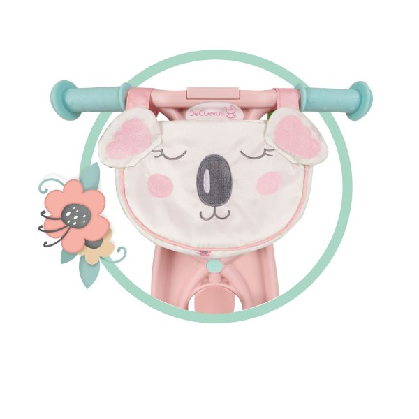 DeCuevas 30179 Detské odrážadlo - Balance Bike KOALA 2024 patrí do rovnomennej kolekcie, ktorá je novinkou roku 2024 a ponúka nielen kočíky, ale aj iné doplnky pre malé slečny a ich bábiky. Táto dievčenská kolekcia KOALA je doslova nežnosť sama. Spiaci medvedík s kvetinou za uškom je veľmi roztomilý. Tento motív sprevádza každý výrobok z kolekcie. V prevedení sa strieda biela s drobnou kvetinovou potlačou s lososovo ružovým jednofarebným materiálom.