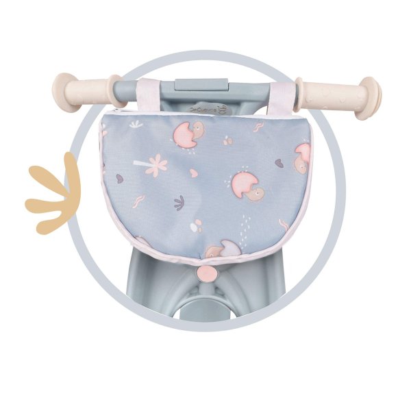 DeCuevas 30180 Detské odrážadlo - Balance Bike COCO 2024 patrí do rovnomennej kolekcie, ktorá je novinkou roku 2024 a ponúka nielen kočíky, ale aj iné doplnky nielen pre malé slečny a ich bábiky, ale aj pre chlapcov. V hravej kolekcii COCO je dominantný obrázok dinosaurie mamičky so svojim roztomilým mláďatkom, ktoré nesie na zadočku ešte vaječnú škrupinu. Potlač malého dinosauríka na jemne holubičej šedomodrej látke je základom celej kolekcie, ktorú zdobia prvky v pieskovej alebo ružovkastej farbe, ktorá sa premieta aj do väčšiny nosných konštrukcií.