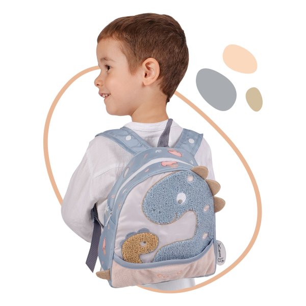 DeCuevas 10580 Detský batôžtek COCO 2024, z rovnomennej kolekcie, ktorá je novinkou roku 2024, sa výborne hodí na výlety, do škôlky, do krúžkov alebo jednoducho kamkoľvek. Všetky deti si s obľubou nosia svoj batôžtek na chrbte, do ktorého si môžu schovať malú desiatu, obľúbenú hračku alebo rôzne drobnosti. V hravej kolekcii COCO je dominantný obrázok dinosaurie mamičky so svojim roztomilým mláďatkom, ktoré nesie na zadočku ešte vaječnú škrupinu. Potlač malého dinosauríka na jemne holubičej šedomodrej látke je základom celej kolekcie, ktorú zdobia prvky v pieskovej alebo ružovkastej farbe, ktorá sa premieta aj do väčšiny nosných konštrukcií. Vďaka zakomponovaným cvokom na ramenných popruhoch sa batôžtek dá pripevniť na madlo kočíka. Batôžtek je vyrobený z polyesteru, je prateľný ručne v studenej vode. Balené v igelitovom obale. Odporúčaný vek od 3 rokov.