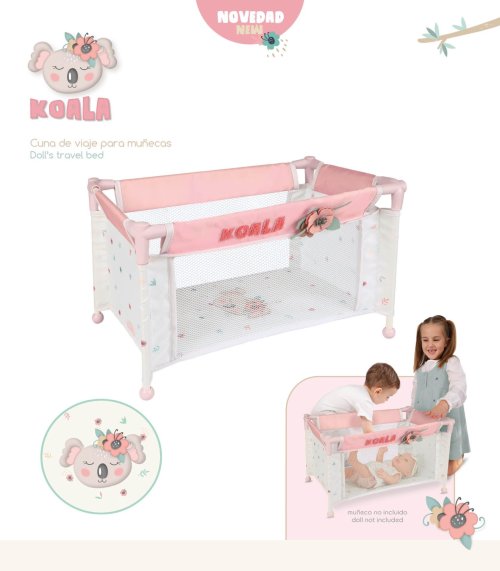 DeCuevas 50079 Cestovná postieľka pre bábiky KOALA 2024, z rovnomennej kolekcie, ktorá je novinkou roku 2024, je nielen krásnym doplnkom dievčenskej izbičky, ale aj naozaj skladnou a ľahko prenositeľnou postieľkou na cesty. Kolekcia ponúka nielen kočíky, ale aj iné doplnky pre malé slečny a ich bábiky. Táto dievčenská kolekcia KOALA je doslova nežnosť sama. Spiaci medvedík s kvetinou za uškom je veľmi roztomilý. Tento motív sprevádza každý výrobok z kolekcie. V prevedení sa strieda biela s drobnou kvetinovou potlačou s lososovo ružovým jednofarebným materiálom. Nádherný španielsky dizajn, precízne spracovanie. Veľmi jednoduchá manipulácia počas samotnej hry. Materiál: kov, plast, textil. Balené v krabici vo farbách kolekcie. Odporúčaný vek od 3 rokov.