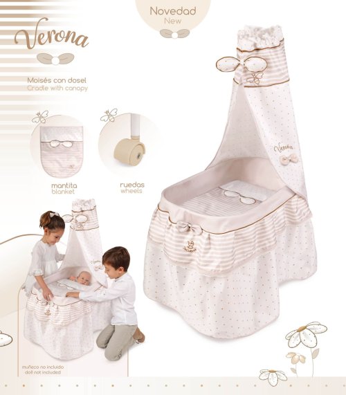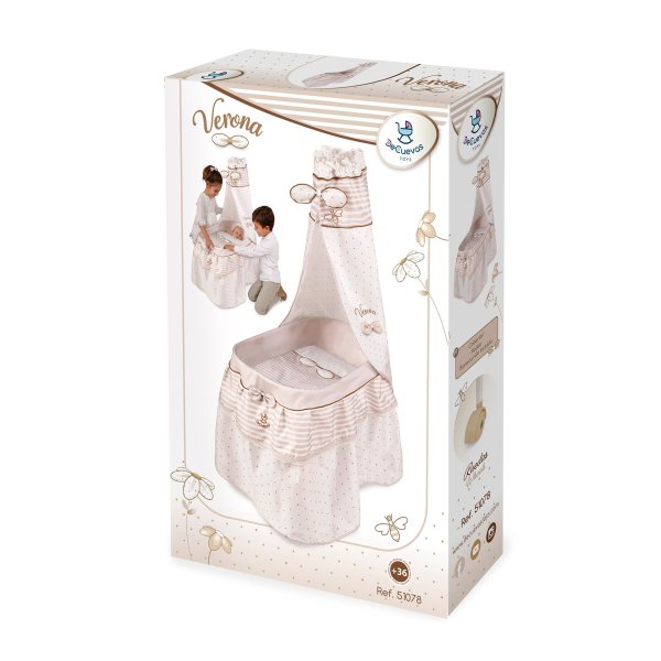 DeCuevas 51078 Pojazdná postieľka pre bábiky s nebesami a perinkou Verona 2024 patrí do rovnomennej kolekcie, ktorá je novinkou roku 2024 a ponúka nielen spomínané kočíky, ale aj iné doplnky pre malé slečny a ich bábiky. Táto decentná kolekcia je celá nesená v jemných pastelových prírodných farbách aj vzoroch. Kombinácia svetlo béžovej a bielej s roztomilými bodkami alebo prúžkami dopĺňa svetlo hnedé úzke lemovanie, ktoré zdôrazňuje dokonalosť tvarov a krásne ladí s hnedými madlami kočíkov. Prírodný štýl kolekcie podčiarkujú aplikácie mašličiek zobrazujúce okvetné lístky a drobné výšivky včeličiek. Doplnky a vybavenie:• Nebesá s mašličkami zobrazujúce okvetné lístky a výšivkami včeličiek• Perinka s ozdobnou mašličkou zobrazujúcou okvetné lístky a výšivkou včeličky • 4 otočné kolieska, umožňujú pohyb akýmkoľvek smerom• Rozmery postieľky: 60 × 37 x 10 cm Rozmery lôžka: 59 x 36 x 20 cm (dx š xv)• Bábika nie je súčasťou baleniaDoplňujúce informácie:• Nádherný španielsky dizajn• Precízne spracovanie• Veľmi ľahká manipulácia počas samotnej hry• Materiál: kov, plast, textil• Balené v krabici vo farbách kolekcie • Rozmery balenia: 62,5 x 11,7 x 41 cm (dx š xv)• Váha balenia: 2,58 kg• Pri vybraných modeloch je na obaloch QR kód s video návodom na zostavenie • Odporúčaný vek od 3 rokovDeCuevas 51078 Pojazdná postieľka pre bábiky s nebesami a perinkou Verona 2024, z rovnomennej kolekcie, ktorá je novinkou roku 2024, poteší každé malé dievčatko. Vďaka otáčavým kolieskam nemusí zostať stáť iba v izbičke, ale