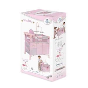 DeCuevas 53075 Skladacia postieľka pre bábiky s 5 funkčnými doplnkami Sophie 2025 z rovnomennej kolekcie, ktorá je novinkou roku 2025, je u dievčatiek obľúbená vďaka svojmu rozmanitému príslušenstvu a úložnému priestoru, ktorý ocenia aj poriadkumilovné mamičky. Nežná dievčenská kolekcia Sophie je neprehliadnuteľná pre každé dievčatko. Svetloružová farba dominuje celej kolekcii. Doplnená je o svetlo šedivé a biele krajčeky a mašličky, ktoré zdobia všetky výrobky tejto rozmanitej kolekcie a ešte viac podčiarkujú nádych romantiky. Kolekcia ponúka nielen spomínané kočíky, ale aj iné doplnky pre malé slečny a ich bábiky. Nádherný španielsky dizajn, precízne spracovanie. Skladací model, veľmi ľahká manipulácia počas samotnej hry. Materiál: kov, plast, textil. Balené v krabici vo farbách kolekcie. Odporúčaný vek od 3 rokov.