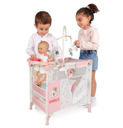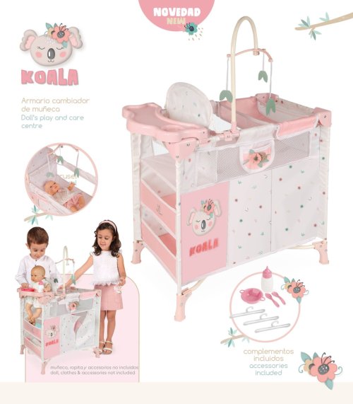 DeCuevas 53079 Skladacia postieľka pre bábiky s 5 funkčnými doplnkami KOALA 2024 patrí do rovnomennej kolekcie, ktorá je novinkou roku 2024 a ponúka nielen kočíky, ale aj iné doplnky pre malé slečny a ich bábiky. Táto dievčenská kolekcia KOALA je doslova nežnosť sama. Spiaci medvedík s kvetinou za uškom je veľmi roztomilý. Tento motív sprevádza každý výrobok z kolekcie. V prevedení sa strieda biela s drobnou kvetinovou potlačou s lososovo ružovým jednofarebným materiálom . • Lôžková časť (42 x 28 cm) so sieťovaným okienkom • Veľká šatňa na zips s tyčkou a 3 ramienkami na oblečenie pre bábiky (40 x 27 x 30 cm)• Dve úložné poličky • Rozmery postieľky: 70 x 32 x 60 cm (dx š xv) • Bábika, oblečenie a veci v poličkách nie sú súčasťou baleniaDoplňujúce informácie:• Nádherný španielsky dizajn• Precízne spracovanie• Skladací model• Veľmi jednoduchá manipulácia počas samotnej hry• Materiál: kov, plast, textil• Balené v krabici vo farbách kolekcie• Rozmery balenie: 61 x 14 x 32,5 cm (dx š xv)• Váha balenia: 2,6 kg• Pri vybraných modeloch je na obaloch QR kód s video návodom na zostavenie • Odporúčaný vek od 3 rokovDeCuevas 53079 Skladacia postieľka pre bábiky s 5 funkčnými doplnkami KOALA 2024, ktorá je novinkou roku 2024, je u dievčat obľúbená vďaka svojmu rozmanitému príslušenstvu a úložnému priestoru, ktorý ocenia aj poriadkumilovné mamičky. Kolekcia ponúka nielen kočíky, ale aj jin