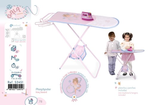 DeCuevas 53451 Skladacia žehliaca doska pre bábiky s doplnkami GALA 2023 patrí do rovnomennej ružovobielej kolekcie s malou gymnastkou, zachytenou v baletne športovej kreácii, ktorá je novinkou roku 2023. Celú ružovobielu kolekciu s drobnou potlačou športových prvkov tašky na kočíkach. Kolekcia ponúka nielen spomínané kočíky, ale aj iné doplnky pre malé slečny a ich bábiky . Doplnky a vybavenie: • Detská plastová žehlička • 3 plastové ramienka na oblečenie pre bábiky • Praktický úložný látkový košíček na oblečenie, upevnený na konštrukcii žehliacej dosky • Nastaviteľná výška 55, 60 a 63 cm• Rozmery dosky: 75 x 25 cm (dx š) x výška 55, 60 alebo 63 cm• Oblečky nie sú súčasťouDoplňujúce informácie:• Nádherný španielsky dizajn• Precízne spracovanie• Skladací model• Veľmi jednoduchá manipulácia počas samotnej hry• Materiál: kov, plast, textil• Balené v krabici vo farbách kolekcie• Rozmery balenia: 83 x 7,5 x 26,2 cm (dx š xv)• Váha balenia: 2,45 kg• Pri vybraných modeloch je na obaloch QR kód s video návodom na zostavenie • Odporúčaný vek od 3 rokovDeCuevas 53451 Skladacia žehliaca doska pre bábiky s doplnkami GALA 2023, z rovnomennej kolekcie, ktorá je novinkou roku 2023, je nevyhnutnou súčasťou výbavy každej malej gazdinky. Vďaka nastaviteľnej výške do 3 úrovní, rastie s malými slečnami aj niekoľko rokov. Kolekcia ponúka nielen spomínané kočíky, ale aj iné doplnky pre malé slečny a ich bábiky. Charakteristická pre túto kolekciu je malá gymnastka, zac