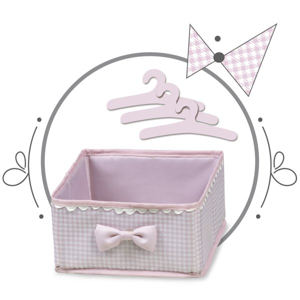 DeCuevas 54846 Drevená šatníková skriňa pre bábiky s hracím centrom NIZA 2022 patrí do rovnomennej nežne ružovej kolekcie NIZA ktorá je novinkou roku 2022 a ponúka okrem rôznych druhov kočíkov aj nábytok pre bábiky a malé parádnice. Kolekcia je vytvorená z jednofarebného ružového materiálu v kombinácii s ružovobielou drobnejšou kockou, zdobená ružovými lemami a bielymi a ružovými drobnými aj väčšími volánikmi. Všetko pôsobí veľmi ľahko a čisto.
