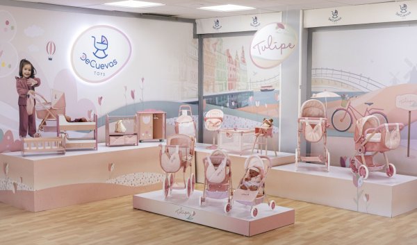 DeCuevas 81074 Skladací kočík pre bábiky s taškou a doplnkami Tulipe 2025 - 81 cm patrí do rovnomennej kolekcie, ktorá je novinkou roku 2025 a ponúka výber výrobkov od jedálenských sád cez postieľky a kočíky až po drevený nábytok pre bábiky. Tulipe je, ako už sám názov napovedá, kolekcia plná tulipánov v prekrásne zladených teplých pastelových lososových farbách. Svetlejšie a tmavšie odtiene farieb sú vkusne doplnené drobným kvetinovým vzorom v rovnakých tónoch na bielosmetanovom podklade. Tento motív ešte navyše u kočíkov umocňujú svojim tematickým tvarom aj prekrásne, ako tulipán vyzerajúce tašky. Kvet tulipánu zdobia aj drevené výrobky tejto kolekcie.