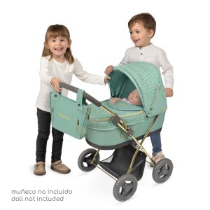 DeCuevas 85073 Skladací kočík pre bábiky so slnečníkom a taškou Capriccio 2025 - 60 cm z rovnomennej kolekcie, ktorá je novinkou roku 2025, je vďaka nízkej rukoväti a ľahkej váhe vhodný pre menšie slečny. Táto úžasná kolekcia Capriccio nie je nová len svojou nezameniteľnou modernou mentolovo zelenou farbou, ale aj svojim ozdobným spracovaním. Ide o imitáciu úpletu rafinovane kombinovaného s hladkou modernou látkou. Rám a podvozok kočíkov tvorí tmavo šedá so zlatými prvkami, ktoré sú vkusne uplatnené v podobe zlatých zipsov a výšivky Capriccio na textilnej časti kočíkov a doplnkovej taške. Kolekcia Capriccio ponúka niekoľko rôznych druhov kočíkov. Nádherný španielsky dizajn, precízne spracovanie. Skladací model, veľmi ľahká manipulácia počas samotnej hry. Materiál: kov, plast, textil. Balené v krabici vo farbách kolekcie. Odporúčaný vek od 3 rokov.