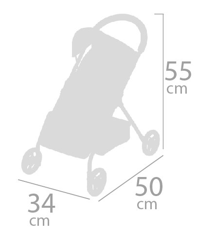 • Rozmery kočíka: 50 × 34 × 55 cm (výška k rukoväti)
