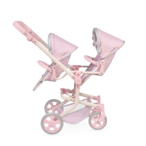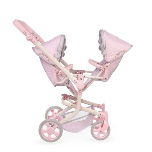 DeCuevas 90875 Skladací kočík pre dvojčatá bábiky s taškou Sophie 2025 - 91 cm z rovnomennej kolekcie, ktorá je novinkou roku 2025. Tento športový kočík je vďaka výškovo nastaviteľnej rukoväte a celkovej veľkosti skôr vhodný pre väčšie slečny, ktoré toto všetko pri hraní. Obdiv si tento kočík právom zaslúži za svoj design, ktorý dokonale kopíruje dnešné moderné reálne detské kočíky celosvetovo známych značiek. Výhodou sú aj odnímateľné prenosné športové korbičky, v ktorých je možné bezpečne prenášať bábiky. Po zložení nezaberá veľa miesta a je praktický aj na prevoz autom. Nežná dievčenská kolekcia Sophie je neprehliadnuteľná pre každé dievčatko. Svetloružová farba dominuje celej kolekcii. Doplnená je o svetlo šedivé a biele krajčeky a mašličky, ktoré zdobia všetky výrobky tejto rozmanitej kolekcie a ešte viac podčiarkujú nádych romantiky. Kolekcia ponúka nielen spomínané kočíky, ale aj iné doplnky pre malé slečny a ich bábiky. Nádherný španielsky dizajn, precízne spracovanie. Skladací model, veľmi ľahká manipulácia počas samotnej hry. Materiál: kov (chróm a hliník), plast, textil. Balené v krabici vo farbách kolekcie. Odporúčaný vek od 3 rokov.