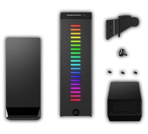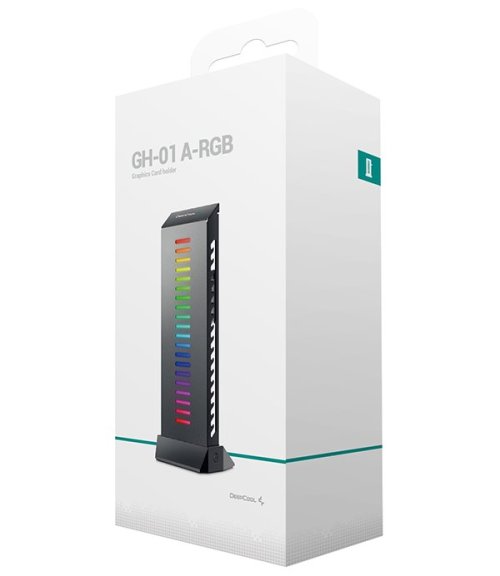 Držiak na grafické karty DEEPCOOL DP-GH01-ARGB s prispôsobiteľným RGB LED osvetlením . Vyznačuje sa prémiovou konštrukciou z kovového rámu a plastovej základne s metalickou farbou, vďaka čomu je dostatočne robustný a štýlový na pohľad. Prevedenie umožňuje skrytie nevzhľadných káblov, takže na pohľad je zostava úhľadná a elegantná.