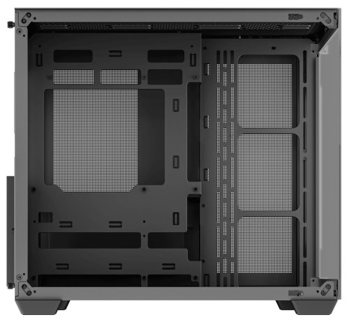 Skriňa formátu Middle Tower s priehľadnou bočnicou a priehľadným predným panelom ponúka tri 2,5" pozície pre SSD disky a dve 3,5" pozície pre pevné disky. Na hornom paneli sa nachádzajú dva USB 3.0 porty, jeden USB 2.0 port a kombinovaný port slúchadiel a mikrofónu. Dômyselné riešenie umožňuje pohodlné umiestnenie až 360 mm dlhého výmenníka vodného chladenia na vrchnej alebo spodnej strane. V skrini je dostatok priestoru pre chladič CPU do výšky až 160 mm a grafickú kartu s dĺžkou 410 mm. Dodávaná je bez zdroja . Vďaka širokej konštrukcii s dômyselným dvojkomorovým usporiadaním zaisťuje táto skriňa vynikajúcu kompatibilitu a optimálne prúdenie vzduchu. Súčasťou je aj sada prachových filtrov .