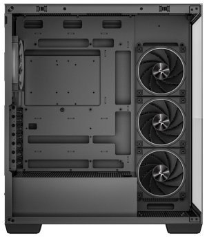 Predinštalované ventilátory: 3× 120 mm PWM ARGB s reverzným prúdením (bok), 1× 120 mm PWM ARGB (vzadu)