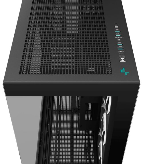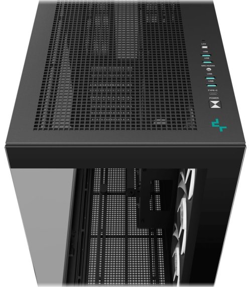 Dvojkomorové usporiadanie umožňuje montáž GPU do vertikálnej polohy. Pripravte sa na bohaté možnosti chladenia. Skriňa DEEPCOOL CH780 disponuje trojicou predinštalovaných 140mm ventilátorov s ARGB podsvietením . Samozrejmosťou je podpora ďalších prídavných ventilátorov. Nechýba ani rad portov na hornom paneli , vrátane hybridného audio portu, čo vám umožní pripojiť periférne zariadenia.