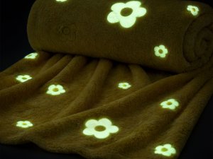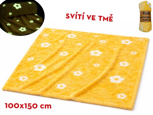 Deka 100x150 cm žltá s kvetinami svietiaca v tme