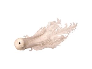 Dekorácia 240 mm vtáčik, škripec, biely mix