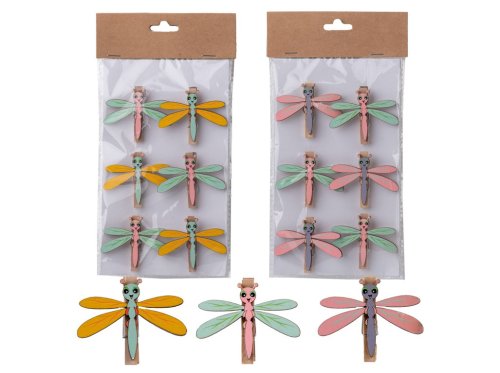 Dekorácia drevenej vážky na kolíčku mix farebná 6ks prináša veselú a farebnú atmosféru do vášho domova. Set obsahuje 6 vážok na kolíčku v rôznych farbách, ideálny pre letné a jarné dekorácie. Jej rozmery sú 50mm.