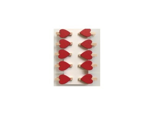Dekorácia drevo 10ks 20mm srdiečko s kolíčkom, červená