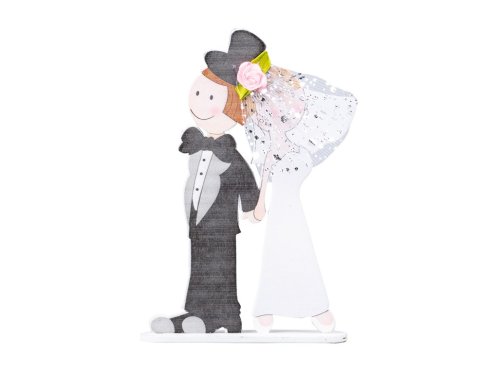 Dekorácia drevo 120x180mm nevesta so ženíchom, čierna s bielou