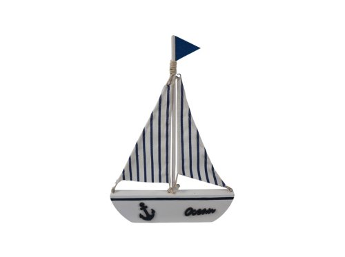 Dekorácia drevo 210x310mm lodička na postavenie, biela, modrá