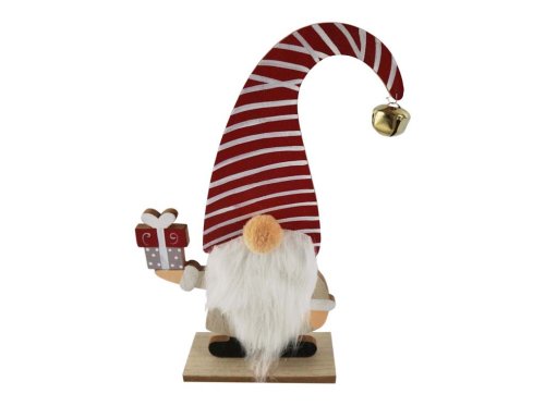 Dekorácia drevo 225x320mm, trpaslík na postavenie, červená, šedá, biela