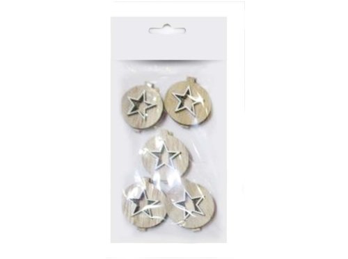 Dekorácia drevo 5 ks 45 mm hviezda kolíček, prírodný