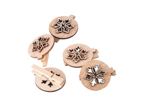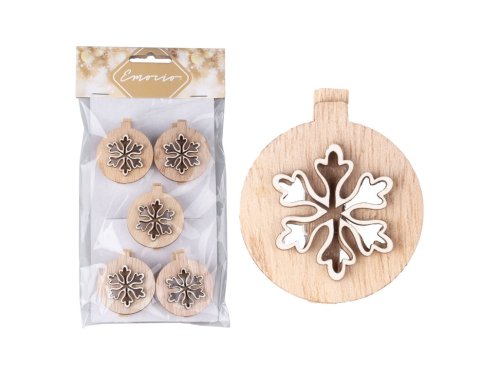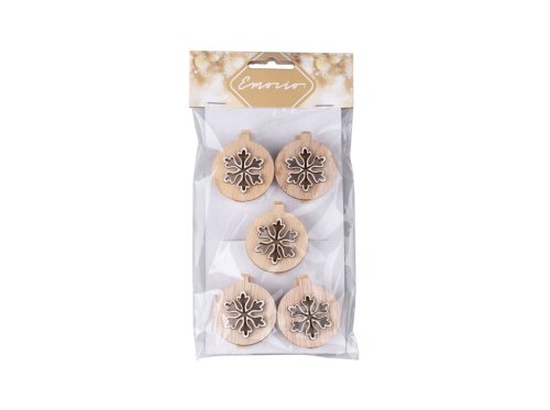 Dekorácia drevo 5 ks 45 mm vločka kolíček, prírodný