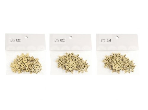 Dekorácia drevo set 12ks 38x36/37x40mm vločky mix, zlatá