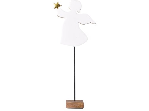 Dekorácia drevo, smalt 200x78x483mm anjel na postavenie, biela