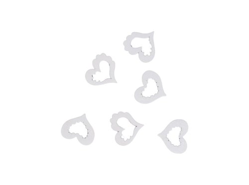 Drevená dekorácia v tvare srdiečka v bielej farbe, ideálna pre darčeky alebo ako dekorácia. Jej rozmery sú 40 x 40 mm.