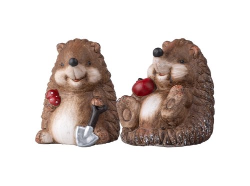 Keramická dekorácia o rozmere 95×117 mm s roztomilým motívom ježka doplneného muchotrávkou, jablkom a malou lopatkou. Farebná kombinácia hnedej a červenej podčiarkuje jesennú atmosféru a dodá každému interiéru hrejivý nádych. Vhodné ako sezónne dekorácie na poličku, parapet či stôl, prípadne ako milý darček. Pevné keramické prevedenie zaisťuje stabilitu aj dlhú životnosť. Tovar je dodávaný v mixe. Doručovaný tovar je vyberaný náhodne a nie je možné vybrať konkrétne prevedenie.