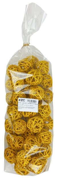Sušená prútená dekorácia v tvare guličiek s priemerom 4 cm v žltom prevedení. Dekoračný prírodný prvok pre vence, misy, aj sezónne výzdoby.