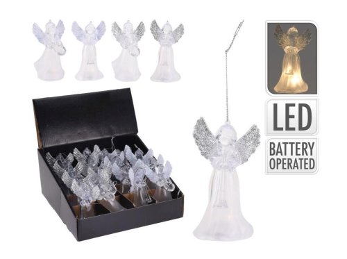 Dekorácia LED ANJEL 11,5 x 6,5 x 6,5 cm, záves, mix. rozmery: 11,5 x 6,5 x 6,5 cm 1 LED mix dekorov gombíková batéria CR 2032, je súčasťou balenia Svietiaca dekorácia navodí príjemnú atmosféru.