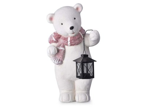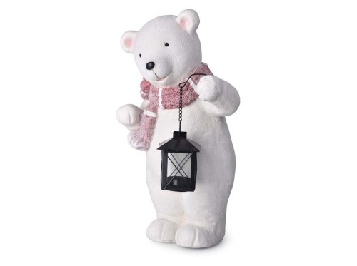 Dekorácia magnézia 225x410mm ľadový medveď s lucerničkoum, biela, čierna
