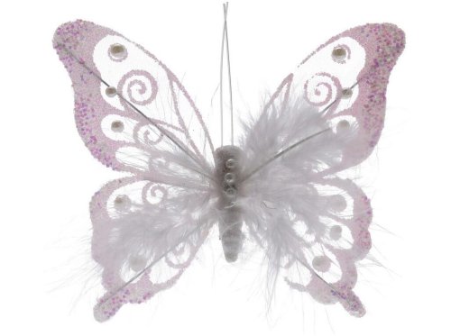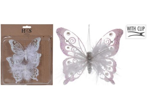 Dekorácia MOTÝĽ 15,5 x 10 cm, PH / PIERKA, BIE, klip (2 ks).