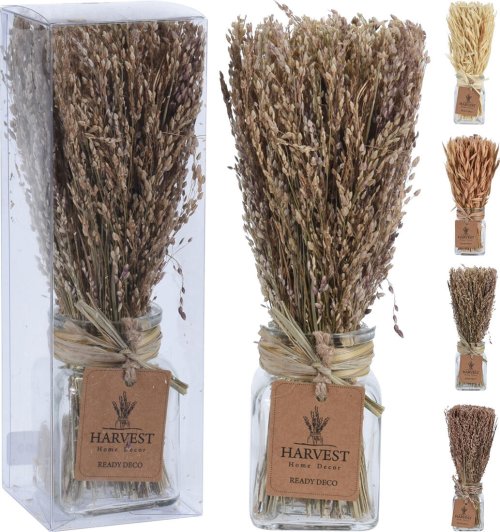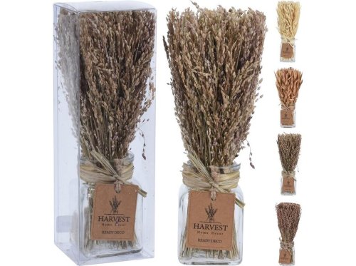 Dekorácia prírodná TRÁVA 22 cm, v sklenenej nádobe, mix.