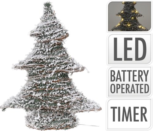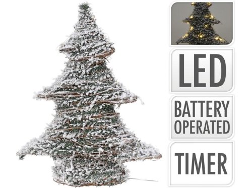 Dekorácia STROM 40 cm, RATAN so snehom, 30LED, s časovačom.