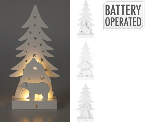Dekorácia závesná STROM S MEDVEDOM 6LED, 34 cm, driev. BIE, mix.