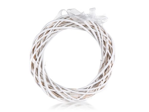 Veniec ratanový v bielej farbe o rozmere 26 x 26 cm. Drevené a ratanové dekorácie sú z prírodných materiálov a vytvárajú príjemnú atomosféru domova.