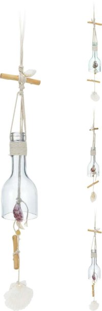 priemer: 7 cm výška: 17 cm materiály: drievko (2 ks), mušle (5 ks), korálik, lano 52 cm, sklenená fľaša - časť mix prevedenie