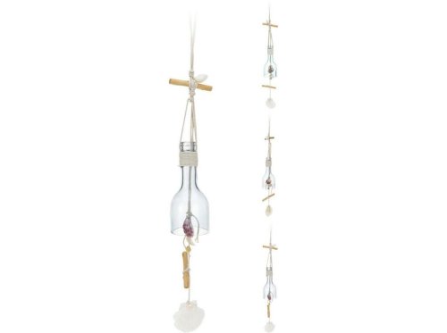 Závesná dekorácia pr. 7 x 17 cm, drevo/lano/sklo/mušle mix.