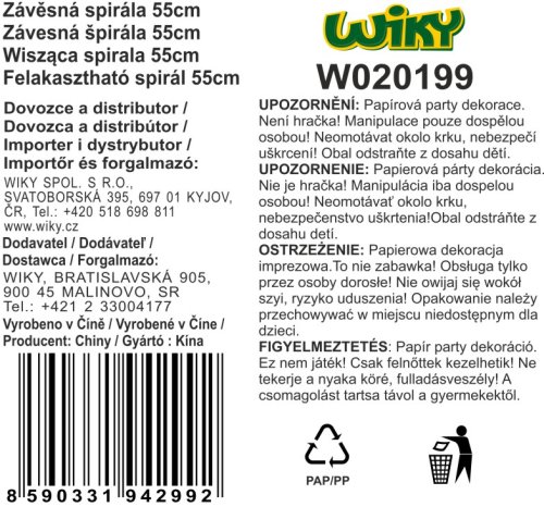 Dekorácia závesná papierová špirála 55cm, viacfarebná