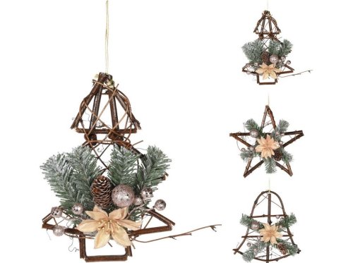 výška: 25 cm materiál: ratan, polyvinyl mix motívov - stromček, hviezda, zvonček