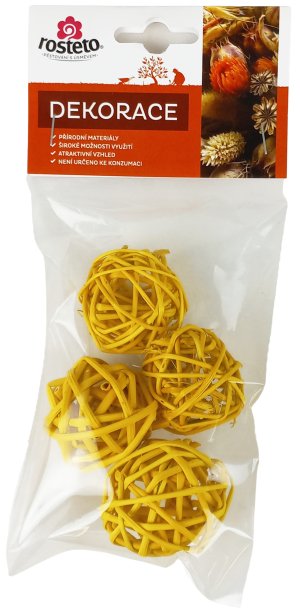 Sušená prútená dekorácia v tvare guličiek s priemerom 4 cm v žltom prevedení. Dekoračný prírodný prvok pre vence, misy, aj sezónne výzdoby.