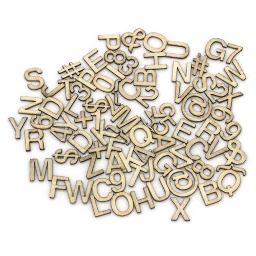 Dekoračné drevené výrezy Balenie obsahuje 86 kusov jednotlivých písmen a číslic Veľkosť: 13 mm Ideálne na zdobenie sezónnych prianí, krabičiek, darčekových tašiek a výrobu svadobných dekorácií