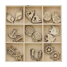 Dekoračné drevené výrezy 45 kusov v balení v drevenej krabičke 9 rôznych vzorov v sade Ideálne na zdobenie sezónnych prianí, krabičiek, darčekových tašiek a výrobu svadobných dekorácií