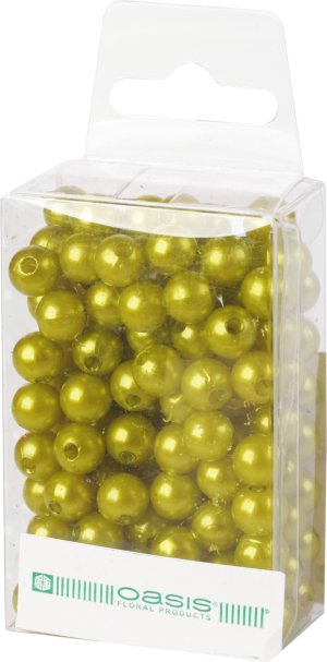 Dekoračné umelohmotné navliekacie perly v priehľadnej plastovej krabičke na zavesenie, obsah 144 ks.