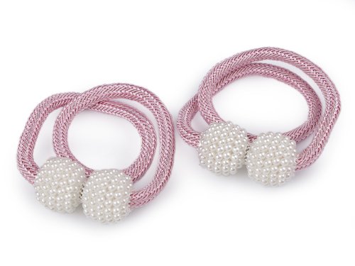 Dekoračný úväz zdobia perlové korálky. Využijete ho na ozdobenie závesov, záclon a pod. Vďaka magnetom dobre drží.