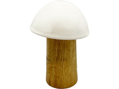Rustikálna huba z dreva s čistým dizajnom, výborne sa kombinuje s machom, šiškami či jesenným lístím. Biely povrch dodáva eleganciu. Rozmery 28 × 28 × 40 mm.